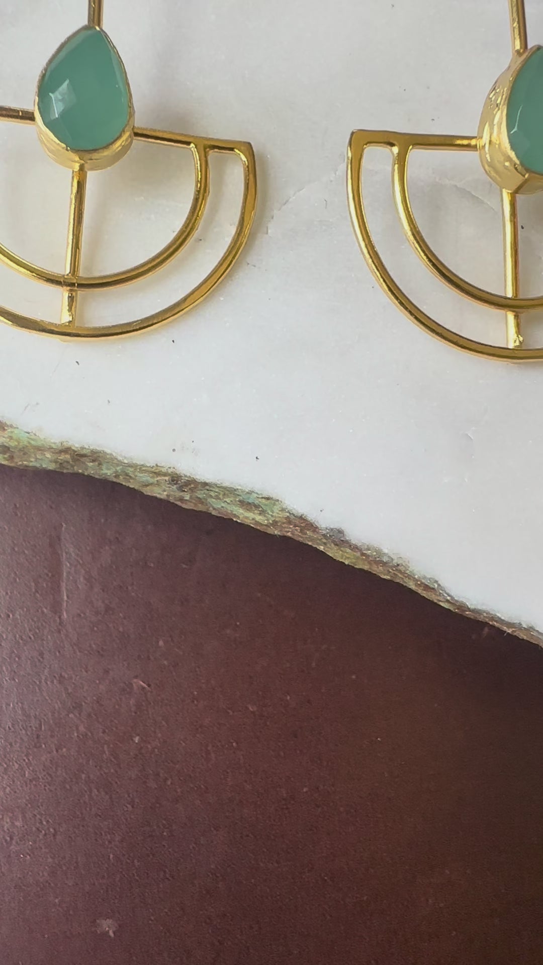 Unleash your playful side with our ”Karpuz Aqua Chalcedony Earrings.” These contemporary abstract earrings showcase a watermelon design with an Aqua Chalcedony seed, making them a fun and versatile addition to your jewelry collection. Perfect for everyday wear or a night out, these unique earrings will surely turn heads! Pushback closing.